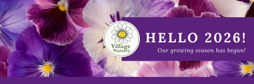Spring is finally here, and we’re excited to begin our 48th season at the Village Nursery. The greenhouses are starting to come to life again, and while we’re still bringing in more plants for the season ahead, a few early favourites are already available including pansies, primroses, seeds, soils & fertilizers, & gift cards!